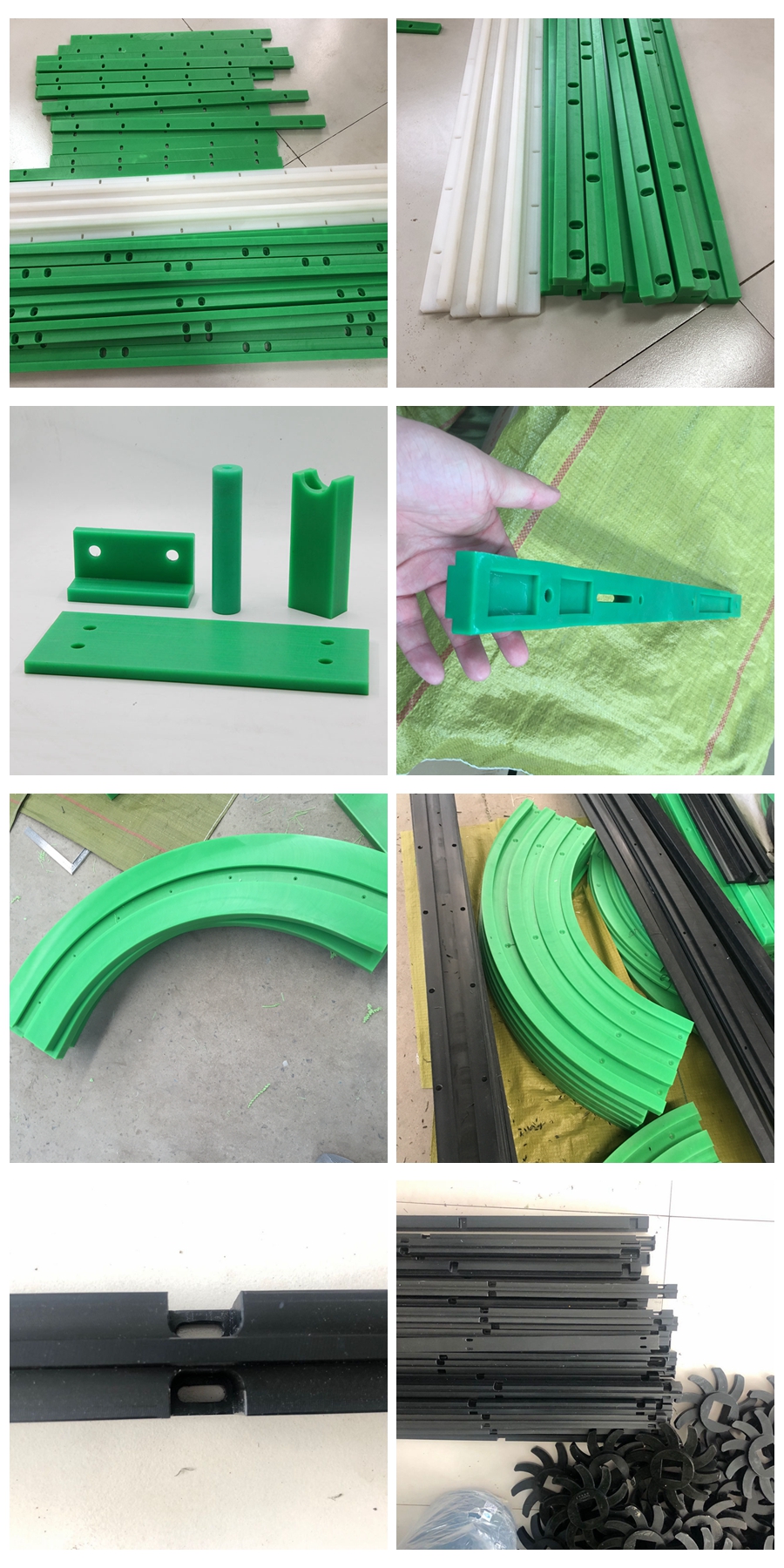 由于超高分子量聚乙烯具有优良的物理机械性能和无毒、无味、不吸水、不黏接、耐腐蚀、质量轻等众多优点,在包装和食品机械行业有着很大的应用市场。目前已向各种包装和食品机械及灌装线成功地提供了各种不同形状和结构的滚轮、链节、链条、蜗杆、导杆、齿轮、星形轮、手轮、滚筒、丝杆、护轨、料斗、压滤板、操作板、刮板、夹持器、衬瓦、柱塞等的配件。